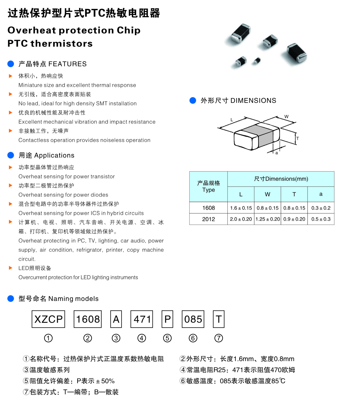 過(guò)熱保護(hù)型片式PTC熱敏電阻器